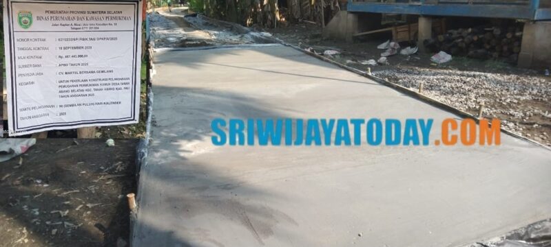 Proyek pembangunan yang bersumber dari APBD Provinsi Sumatera Selatan Tahun Anggaran 2025 ini dikerjakan oleh CV Martel Bersama Gemilang dengan nilai kontrak Rp467,4 juta dan masa pelaksanaan 90 hari kalender sejak 10 September 2025.