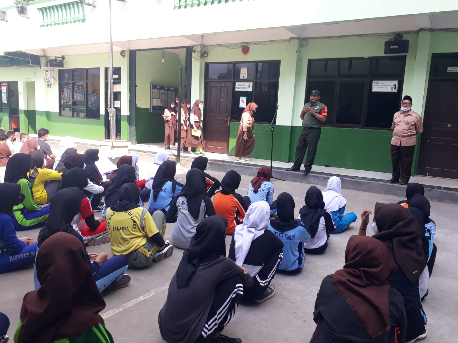 Sriwijayatoday.com Kodim 0505/Jakarta timur – Bertempat di SMK Nurul Iman jln.Pisangan Baru Timur RT.09/09 Kelurahan Pisangan Baru Kecamatan Matraman, Babinsa Koramil 02/Matraman Serda Supriyadi dan Kopda Yasid memberikan materi Wasbang dan pembentukan karakter siswa, siswi, Kamis (21/07/22).