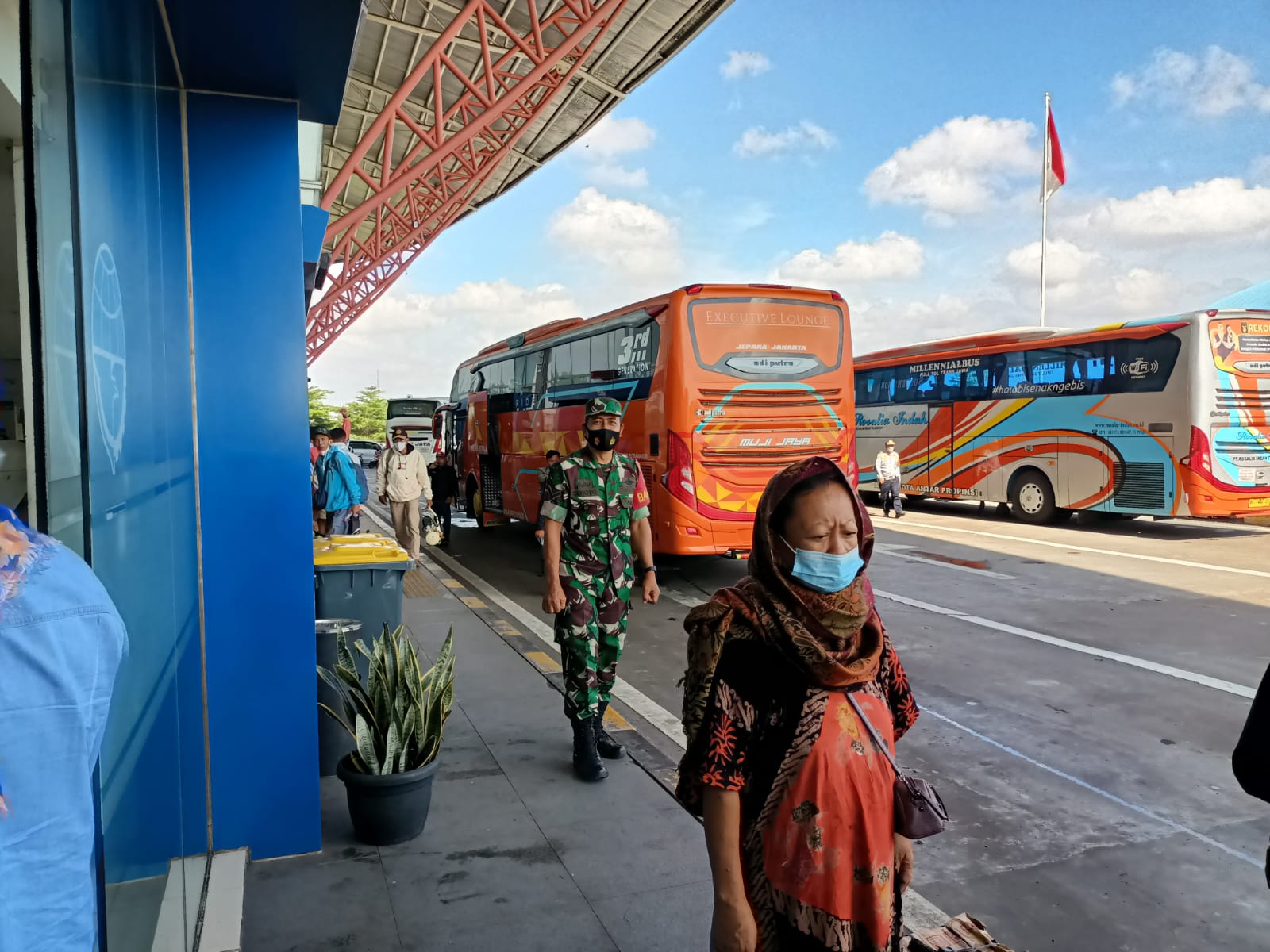 Sriwijayatoday.com Kodim 0505/Jakarta timur – Babinsa Koramil 06/Cakung Serda Suroto, Serma Dulyati bersama Tiga Pilar Dalam rangka arus balik mudik lebaran TA.2022, melaksanakan pengamanan di pos pelayanan Terminal Bus Terpadu Pulogebang Kecamatan Cakung, Jumat (06/05/2022).