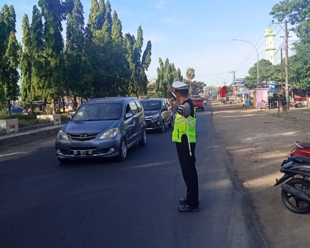 SRIWIJAYATODAY.COM // TAKALAR Personil Sat Lantas Polres Takalar selalu hadir ditengah-tengah masyarakat dengan memberikan pelayanan prima Kepolisian, salah satunya dengan melakukan pengamanan dan pengaturan arus lalu lintas, demi kelancaran dan kenyamanan pengguna jalan serta meminimalisir terjadinya kecelakaan berlalu lintas. Kamis pagi, 03/08/ 2023.