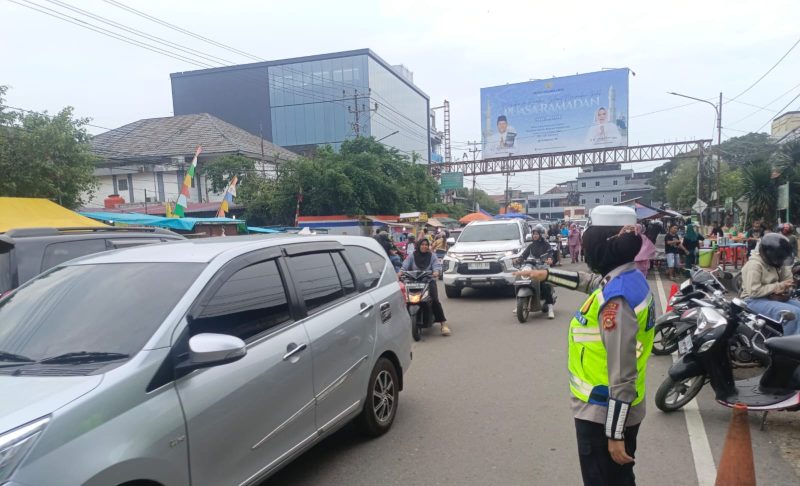 Petugas Polantas turun langsung ke lapangan untuk mengatur kendaraan, membantu penyeberangan masyarakat serta memastikan arus lalu lintas tetap berjalan lancar dan tertib.