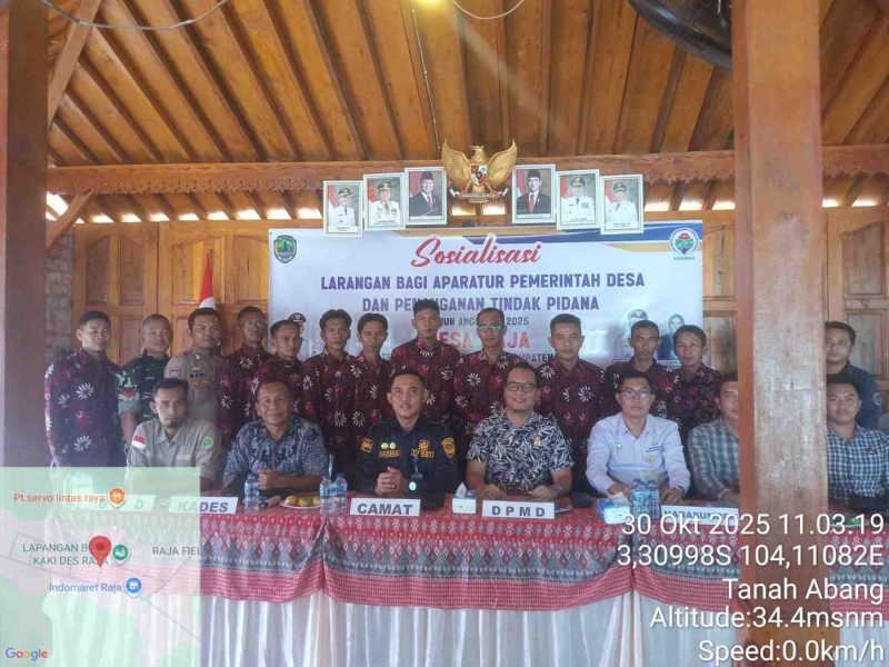 Kegiatan sosialisasi ini dibuka secara resmi oleh Camat Tanah Abang, Dadang Afriandy, S.H., M.Si, didampingi Kepala Desa Raja, Aswin Markusuma. Turut hadir Ipda Aldi, Kanit Tipikor Polres PALI yang mewakili Kapolres PALI, serta unsur penting lainnya seperti perwakilan Kejaksaan Negeri PALI, Dinas PMD, pendamping desa, BPD, LPMD, Linmas, dan seluruh perangkat desa di Kecamatan Tanah Abang.