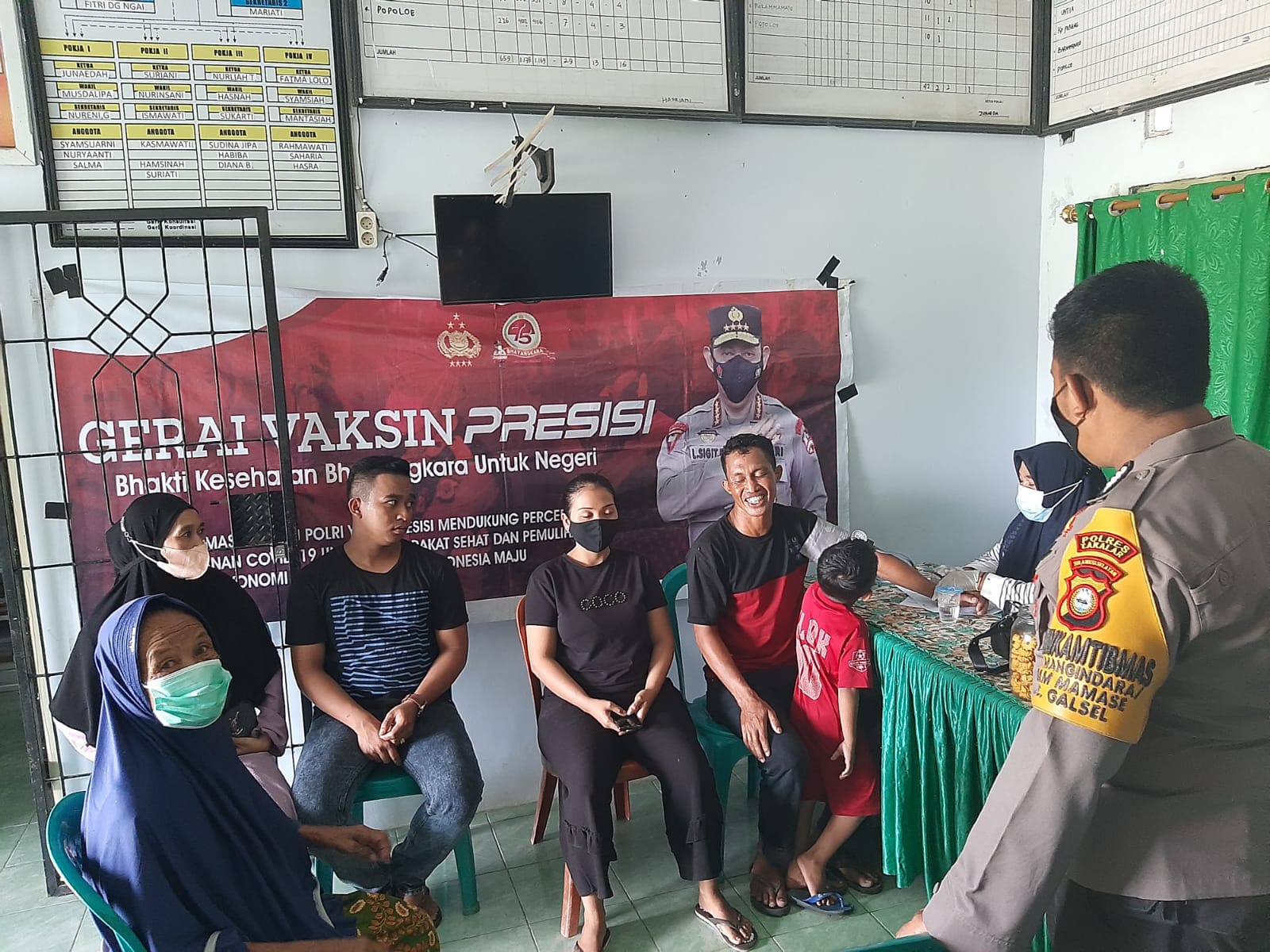 SRIWIJAYATODAY.COM//Takalar, Guna mendukung program pemerintah dalam percepatan Vaksin Nasional dan guna menekan angka penyebaran Covid-19, Polsek Galesong Selatan Polres Takalar menggelar Gerai Vaksin Presisi, di Kantor Desa Barammamase, Kecamatan Galesong Selatan, Kabupaten Takalar. Sabtu (13/11/2021).