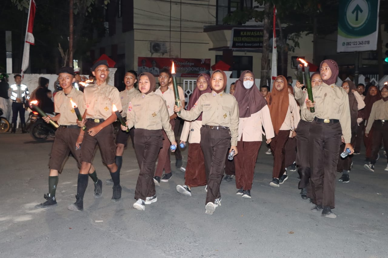 SRIWIJAYATODAY.COM // GOWA-SULSEL, Personil Polres Gowa mengikuti Upacara Gelar Taptu dan Pawai obor yang dilaksanakan di Halaman Kantor Bupati Gowa dalam rangka memperingati Hari Kemerdekaan Republik Indonesia yang Ke-77 Tahun, Selasa (16/08/2022).