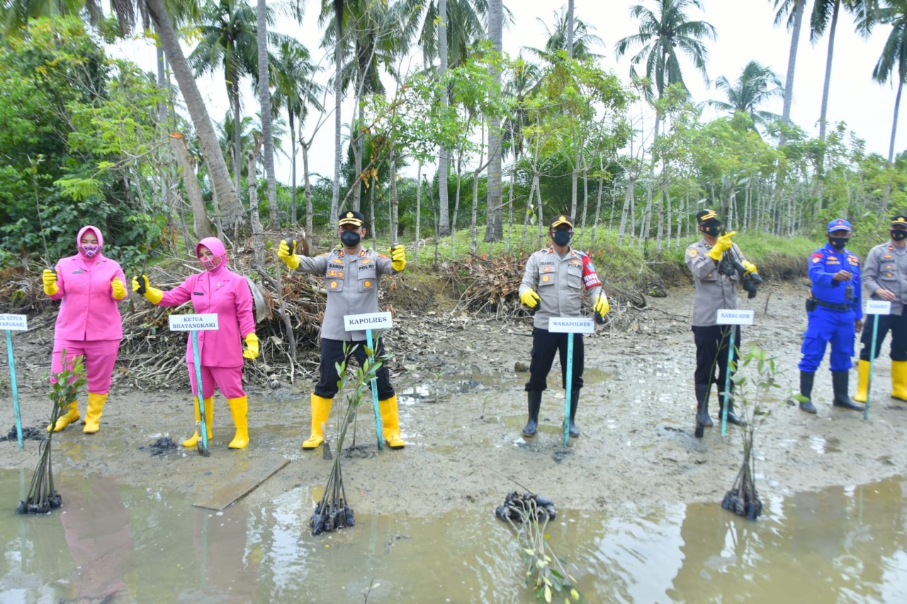 Kapolres mengatakan, kegiatan ini dalam mendukung program Pemulihan Ekonomi Nasional (PEN) Mangrove 2020-2021 seperti yang sudah dicanangkan Presiden RI Bapak Joko Widodo di berbagai wilayah pesisir sekaligus memperingati hari pohon sedunia atau World Tree Day yang diperingati setiap tanggal 21 Nopember, ujar Kapolres.
