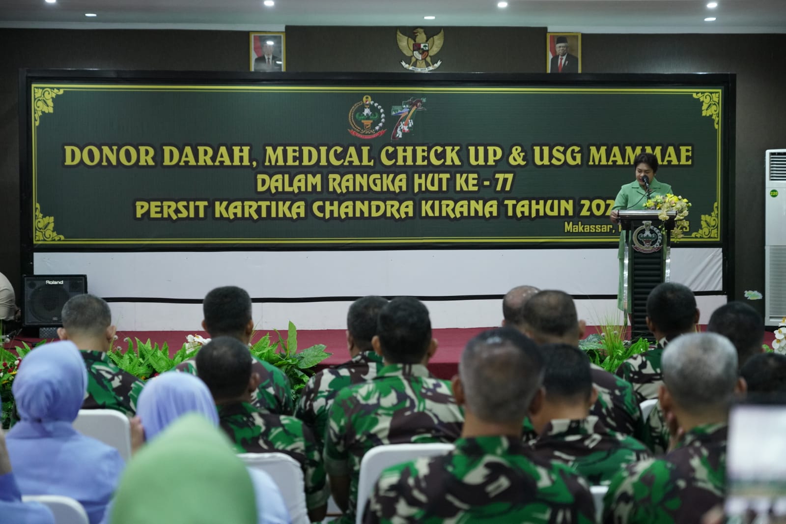 SRIWIJAYATODAY.COM // Makassar – Ketua Persit Kartika Chandra Kirana (KCK) PD XIV/Hasanuddin Ny. Desi Totok Imam memimpin kegiatan Medical Chek Up serta USG Mammae dan Donor Darah sebagai rangkaian kegiatan memperingati HUT ke-77 Persit Kartika Chandra Kirana tahun 2023, bertempat di Rumah Sakit Tk. II Pelamonia Kesdam XIV/Hsn, Kota Makassar. Selasa (14/03/2023).