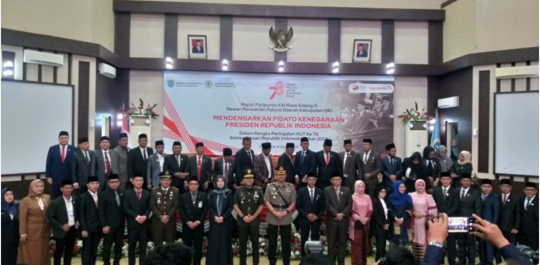 OKI,sriwijayatoday.com- Dewan Perwakilan Rakyat Daerah (DPRD) Kabupaten Ogan Komering Ilir menggelar rapat paripurna XXI masa sidang II mendengarkan pidato kenegaraan Presiden RI, secara live streaming dalam rangka memperingati HUT RI Ke 78 Tahun Kemerdekaan Republik Indonesia tahun 2023, bertempat di ruang sidang utama gedung DPRD OKI, Rabu (16/8/23).