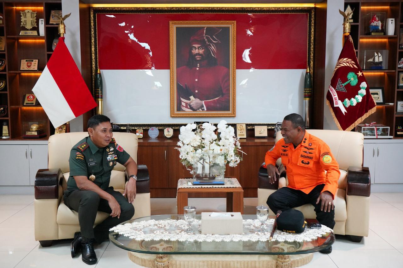 Pangdam Hasanuddin didampingi sejumlah PJU Kodam, menyambut kedatangan Kabasarnas Makassar. Kunjungan ini sebagai bentuk silaturahmi dan upaya memperkuat hubungan kerjasama yang telah terjalin baik, serta saling mendukung dalam melaksanakan tugas pokok masing-masing.