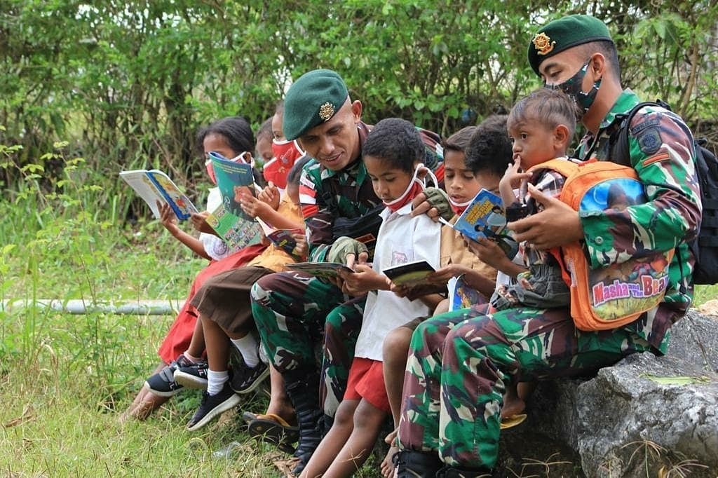 Perpustakaan Keliling Satgas Yonarmed 6 Kostrad Jadi Sarana untuk Meningkatkan Minat Baca Siswa di Perbatasan