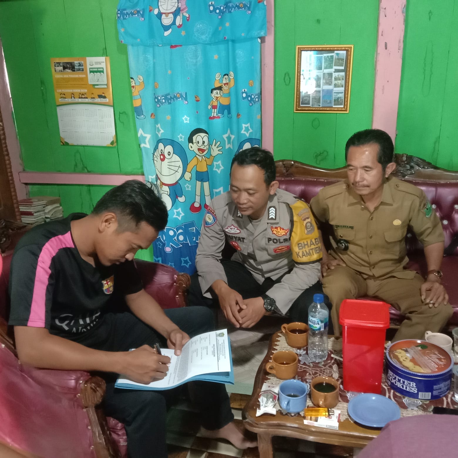 Kegiatan mediasi berjalan lancar aman dan kondusif. Alhamdulillah setelah dilakukan mediasi Kedua belah pihak sudah sepakat untuk berdamai secara kekeluargaan, dengan membuat surat pernyataan yang ditandatangani oleh Kedua belah pihak disaksikan oleh BHABINKAMTIBMAS dan Kades Pandan Dulang. Cetusnya.