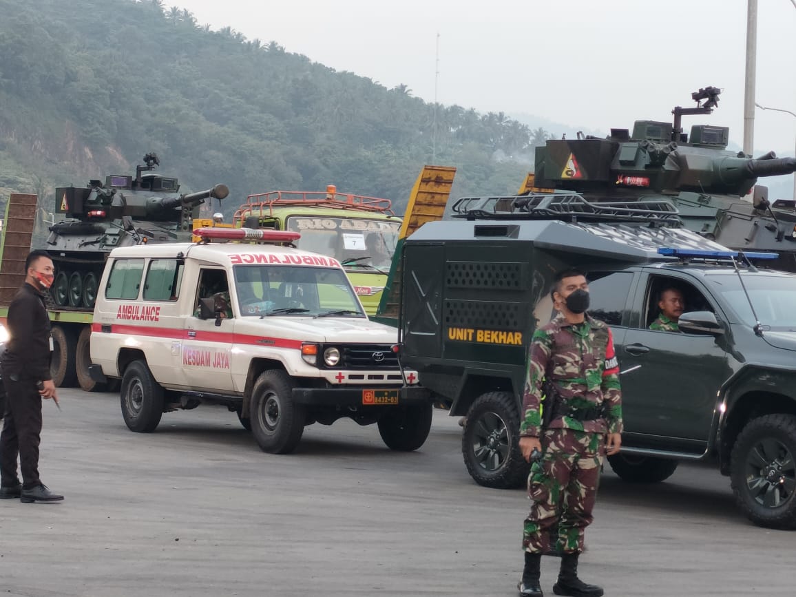 Sriwijayatoday.com Kodam Jaya – Tangerang. Dengan telah dilaksanakannya upacara pelepasan pemberangkatan oleh Pangdam Jaya Mayjen TNI Mulyo Ajie, M.A., tepatnya pada pukul 15.30 Wib, seluruh peserta latihan YTP Kodam Jaya beserta alutsista liannya, bergeser atau bergerak menuju Medan Latihan di daerah Baturaja Sumatera Selatan, dengan pengawalan konvoi iring-iringan kendaraan dilepas oleh Pangdam Jaya dari Markas Yonmek 203/AK, Jln Gatot Subroto KM 6 Jatiuwung Tangerang Banten, Kamis (10/6/2021).