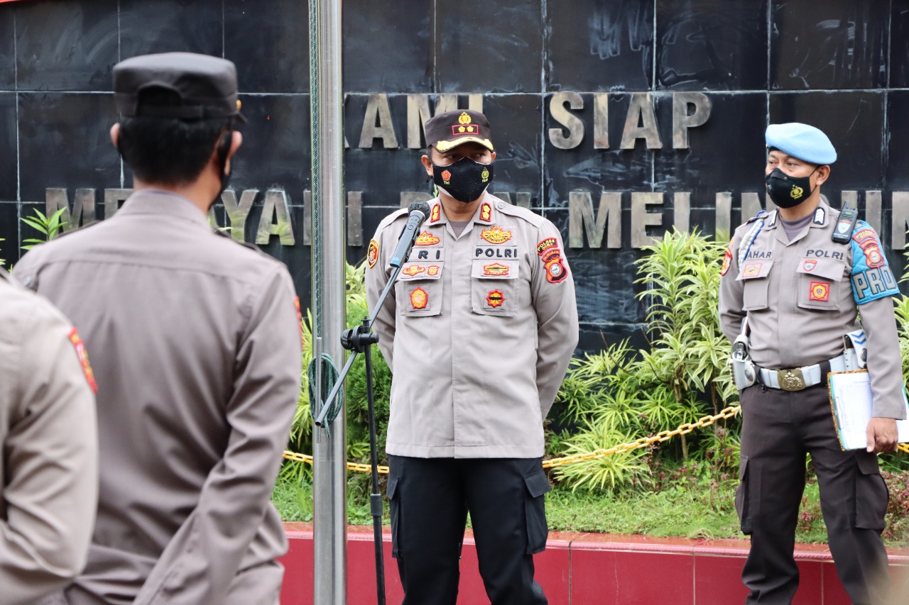 “Saya minta kepada personil untuk terus mengedukasi masyarakat diwilayah tugas masing-masing untuk mau di vaksin dan pastikan keluarga kita sendiri untuk lakukan vaksinasi 1, 2 dan booster” Ucap AKBP Tri saat memberikan arahan di hadapan personilnya.