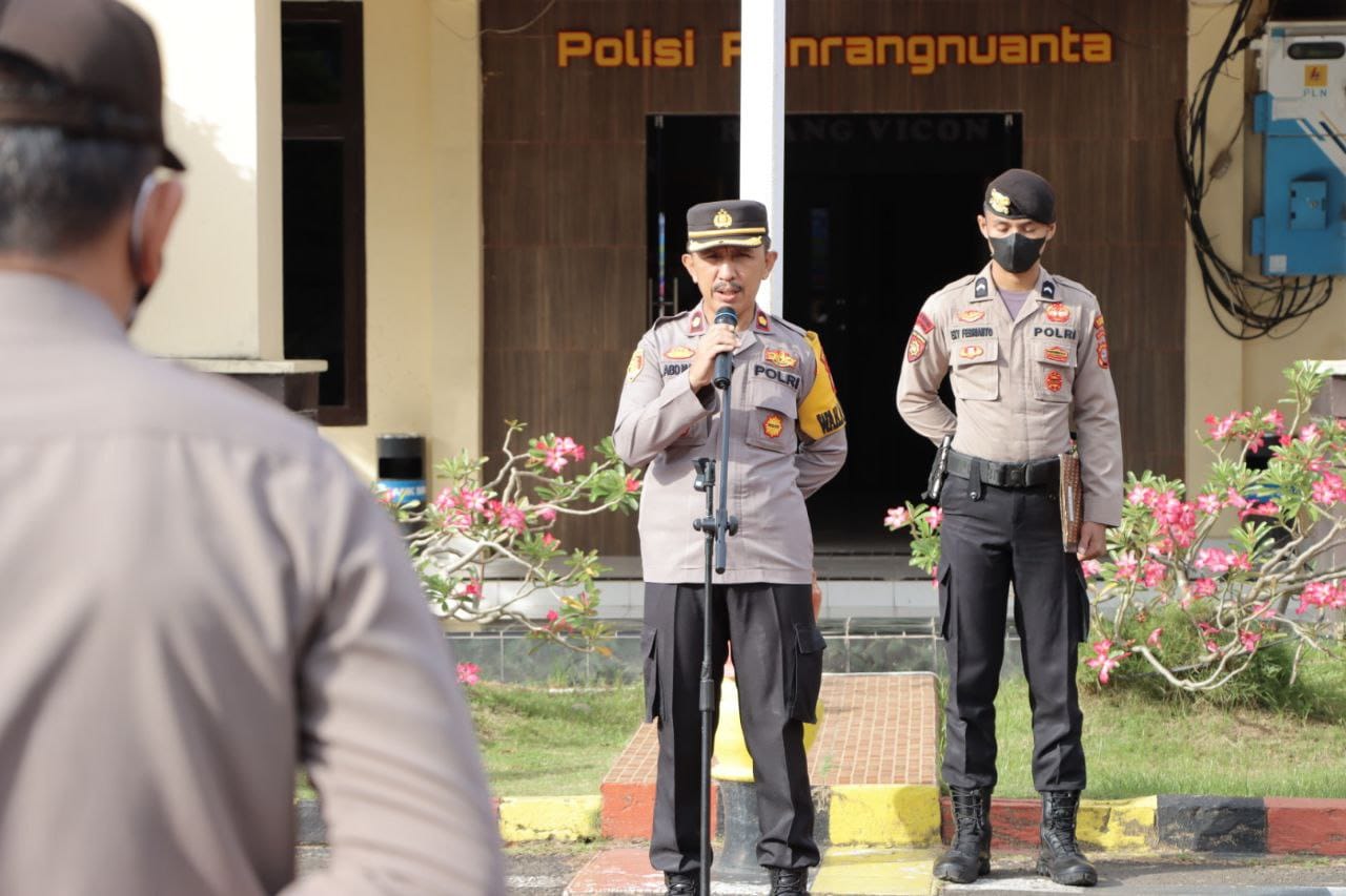 “Kepada seluruh personel agar tetap menjaga soliditas. Tingkatkan kedisiplinan dan loyalitas dalam bekerja dan tetap waspada dan cermati situasi saat ini dan situasi ke depan apabila mengetahui ada ancaman gangguan agar dianalisa dan dilaporkan. Sebagai masukan dan langkah awal untuk mengambil tindakan,” jelas Wakapolres.