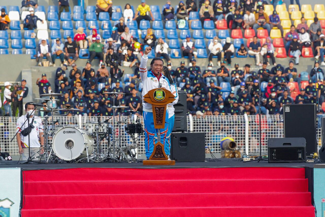Penjabat (Pj) Gubernur Banten Al Muktabar membuka pelaksanaan Pekan Olahraga Provinsi (Porprov) VI Tahun 2022 di Stadion Benteng Rebound, Kota Tangerang, Minggu (20/11/2022). Porprov yang digelar empat tahun sekali itu diharapkan dapat mencetak atlet-atlet berprestasi, generasi emas yang unggul.