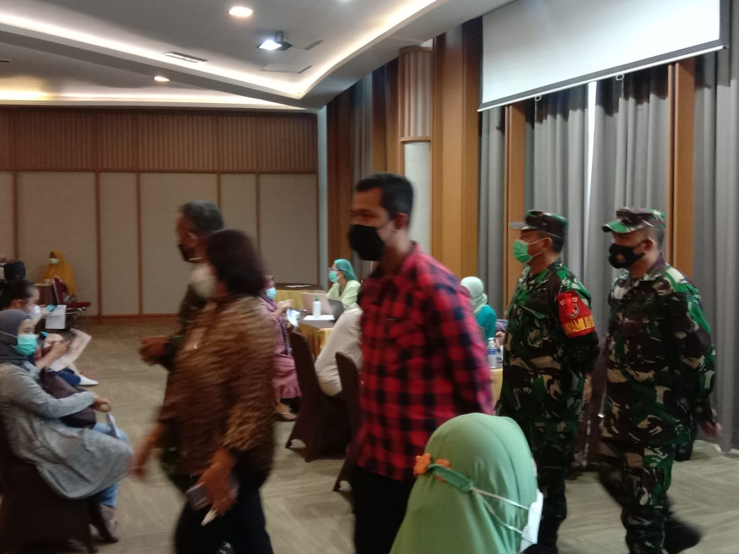 Sriwijayatoday.com Kodim 0505/Jakarta timur – Mayor Inf Nawawi Affandi Plh. Kasdim bersama Kapten Inf Sayidan SE dampingi Kasdam Jaya Brigjen TNI M. Saleh meninjau lokasi Serbuan Vaksinasi bertempat di Clube house JGC RW.14 Kelurahan Cakung timur Kecamatan Cakung, Jumat (18/06/21).