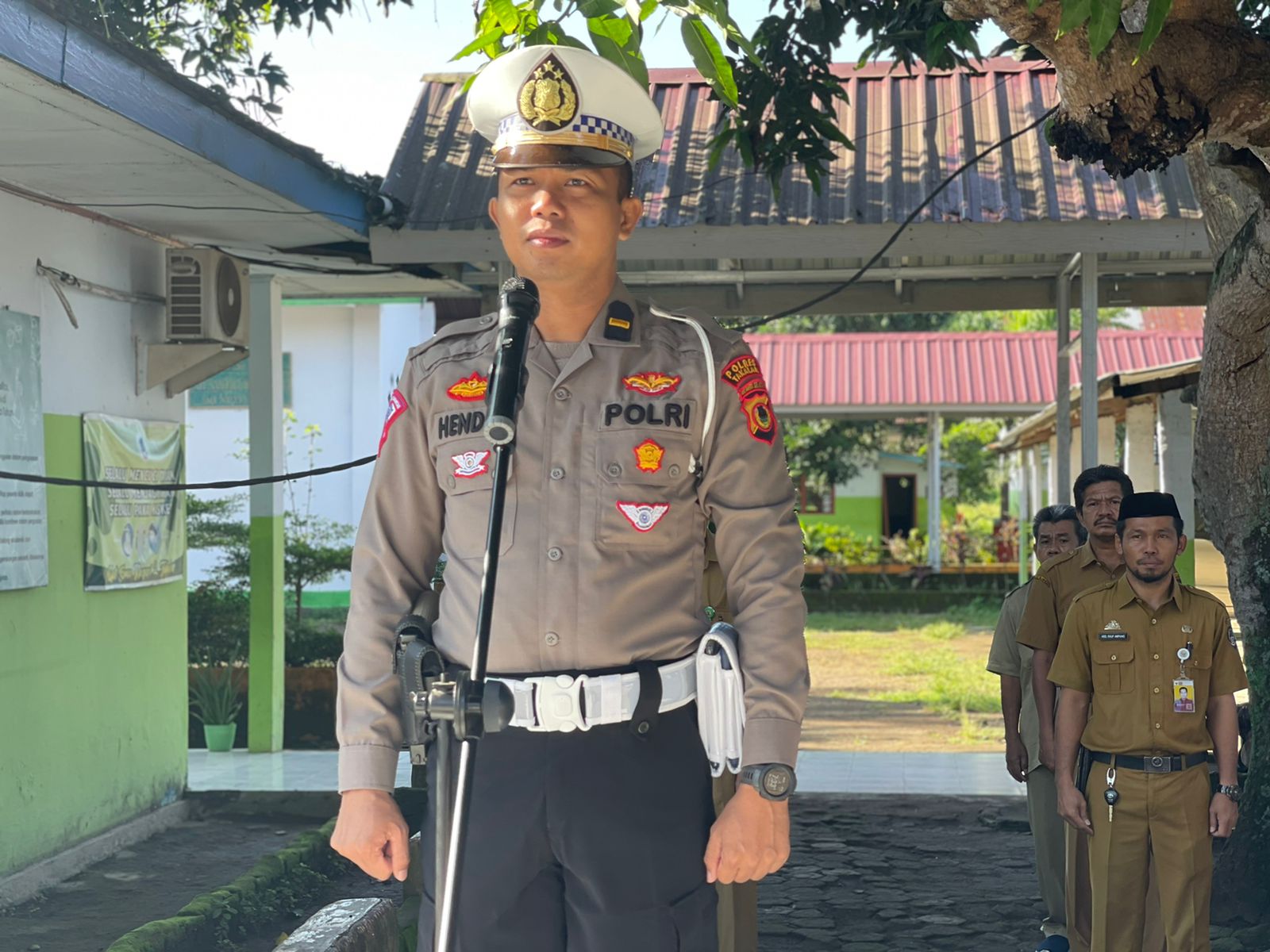 Saat bertindak sebagai Inspektur Upacara, Ipda Hendra, S.Sos memberikan materi sosialisasi Undang-Undang Nomor 22 tahun 2009 tentang Lalu – Lintas dan angkutan jalan, pengenalan aturan lalu lintas, 12 gerakan dasar lalu lintas dengan mengedepankan keselamatan diri sendiri dan orang lain. Selain itu, pemahaman masalah rambu dan marka jalan.