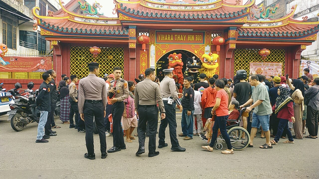 Dengan pengawalan ketat personel Polda Lampung, pelaksanaan kegiatan perayaan Tahun Baru Imlek 2025 di Teluk Betung, Lampung, berlangsung meriah, aman dan kondusif.