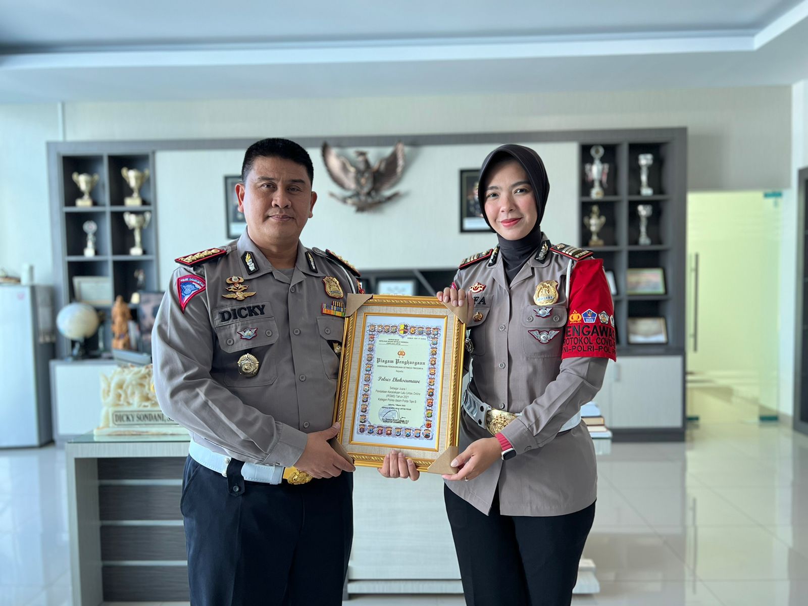 Kapolres Lhokseumawe AKBP Eko Hartanto SIK MH melalui Kasat Lantas, AKP Vifa Febriana Sari SH SIK MH mengatakan, penyerahan penghargaan dari Kakorlantas Polri tersebut diberikan oleh Dirlantas Polda Aceh yang diterima langsung Kasat Lantas Polres Lhokseumawe.