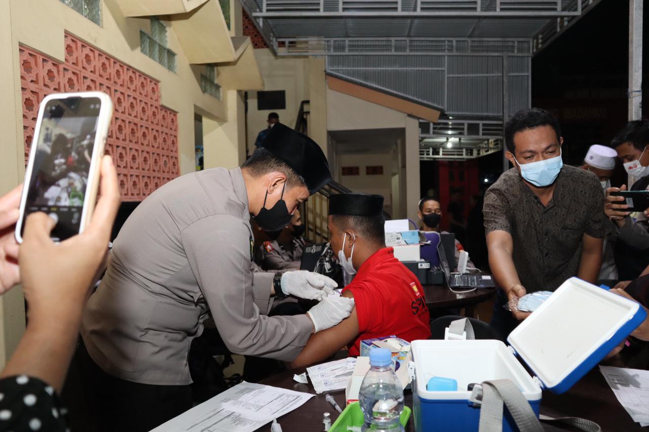 Selain dilaksanakan di Mapolres Takalar, Vaksinasi setelah pelaksanaan sholat tarawih juga dilaksanakan oleh beberapa Polsek jajaran Polres Takalar antara lain Polsek Mapsu, Polsek Galesong Selatan dan Polsek Galesong Utara. (Hms-Aswa)