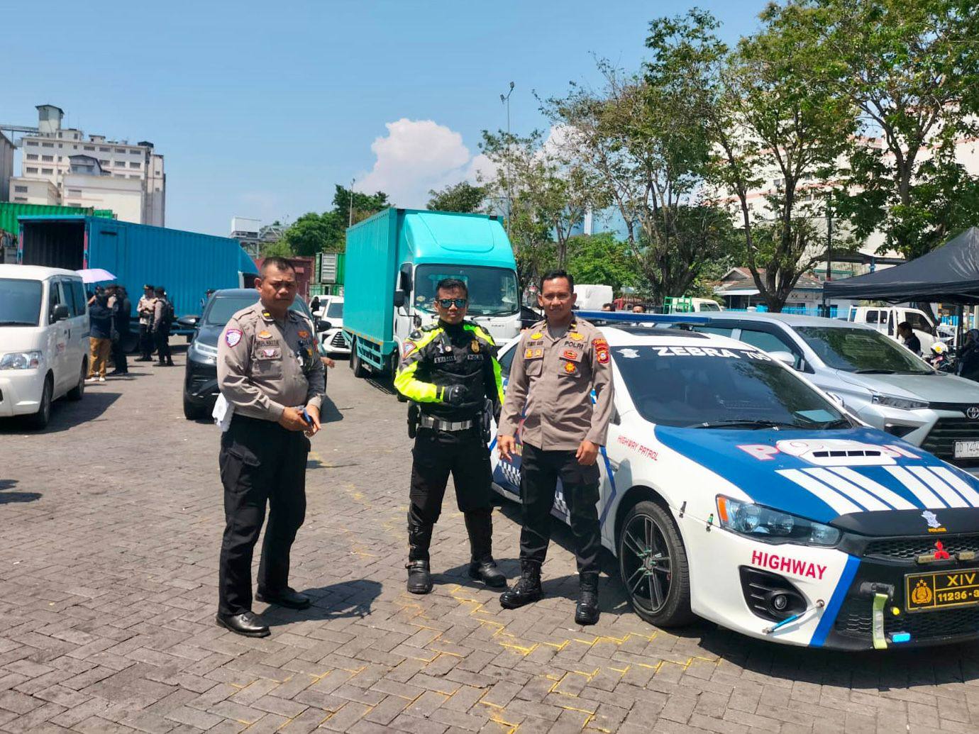 Pengawalan ini dimulai dari pelabuhan Soekarno Hatta Makassar hingga tiba di gudang Komisi Pemilihan Umum (KPU) Kabupaten Takalar, guna memastikan keamanan dan kelancaran distribusi logistik pemilu.