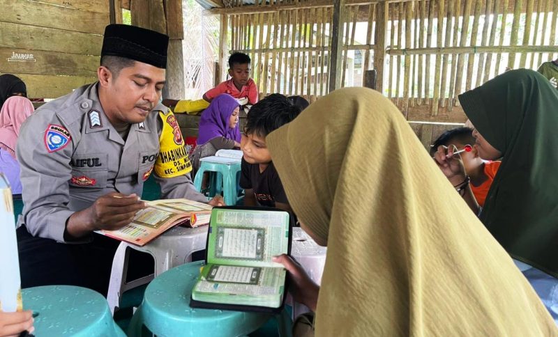 Aceh Timur, Sriwijayatoday.com — Sosok anggota Polri yang satu ini patut diacungi jempol, Bhabinkamtibmas Polsek Simpang Jernih, Polres Aceh Timur, Polda Aceh, Bripka Saifullah juga aktif menjadi guru ngaji bagi anak-anak di Desa Simpang Jernih.