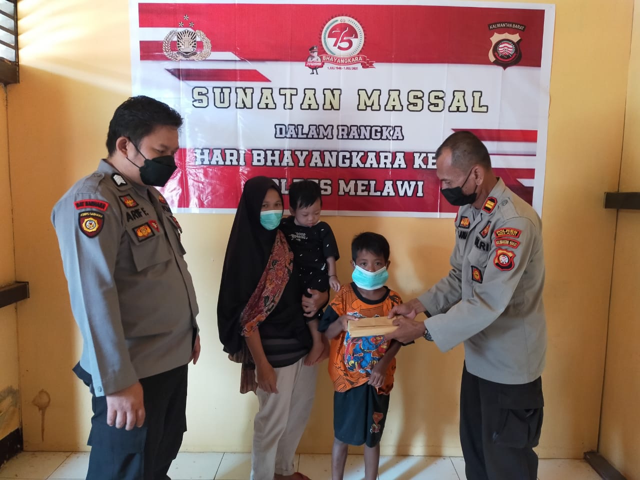 Sriwijayatoday.com Polda Kalbar Polres Melawi – Dalam Rangka hari Bhayangkara yang ke -75 Kapolsek Menukung Iptu Tri Jumadi melaksanakan kegiatan sunat masal diwilayah hukumnya, dengan sasaran warga kurang mampu, kegiatan dilaksanakan di Polsek Menukung. Jumat (25/06).