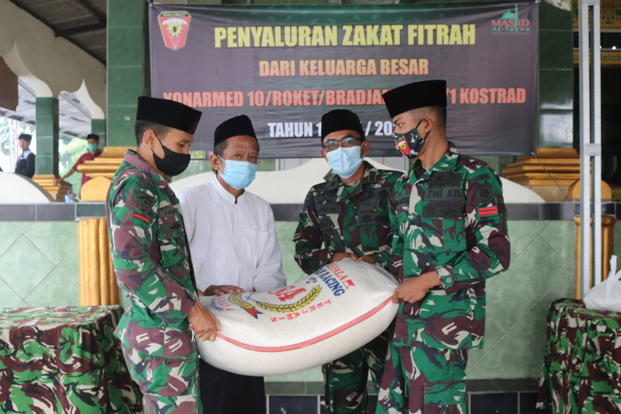 Wadanyonarmed 10 Kostrad, Mayor Arm Novihardi S.E mewakili Komandan Batalyon menyampaikan bahwa penyerahan zakat fitrah yang bertempat di Masjid At Taqwa Yonarmed 10 Kostrad merupakan bentuk kesadaran dan kewajiban dari seluruh prajurit dan warga dalam rangka penyempurnaan ibadah puasa Ramadhan 1442 H dalam rangka mencapai predikat taqwa dari Allah SWT.