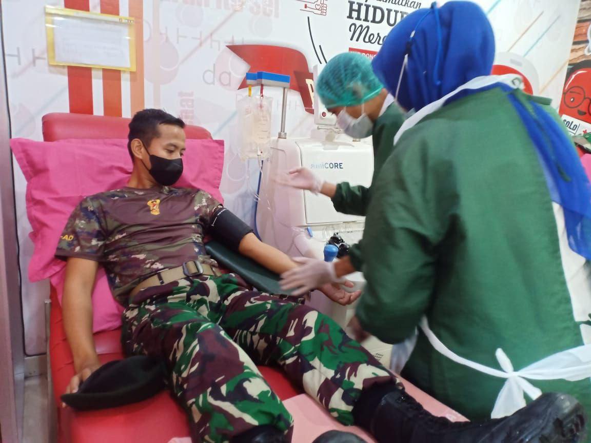 Kegiatan donor darah plasma tersebut dihadiri oleh 13 prajurit Yonif Mekanis Raider 413 Kostrad yang sudah memenuhi syarat untuk melaksanakan donor darah plasma. (Penkostrad).
