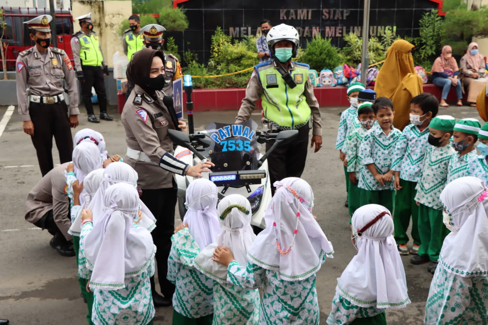 Dalam kegiatan itu anak-anak diberikan penjelasan oleh personil Polisi Wanita (Polwan) tentang rambu lalulintas yang sering ditemui di jalan saat berkendara serta aturan dan larangan yang harus di perhatikan.