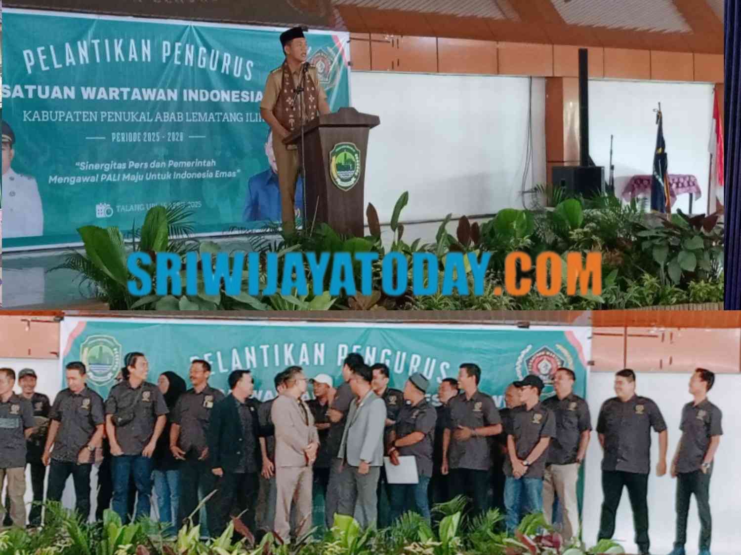 Sriwijayatoday.com, PALI – Bupati Penukal Abab Lematang Ilir (PALI), Asgianto, S.T., menghadiri pelantikan pengurus Persatuan Wartawan Indonesia (PWI) Kabupaten PALI periode 2025–2028. Acara berlangsung khidmat di Komplek Pertamina Pendopoan Guest House, Kecamatan Talang Ubi, Kabupaten PALI, Selasa (16/4/2025).