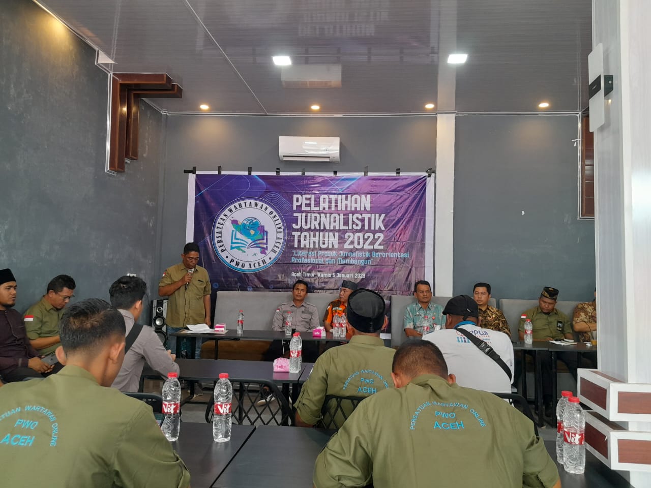 Ketua PWO-Aceh Hasbi Abubakar didampingi Sekjen Masri Jafar kepada Sriwijayatoday.com mengatakan, Pelatihan Jurnalistik yang diselenggarakan ini untuk penguatan kapasitas kewartawanan anggota PWO-Aceh khususnya dan teman media lainnya yang turut hadir memenuhi undangan kami, dengan mengusung tema ‘Literasi Produk Jurnalistik Berorientasi Profesional dan Membangun’