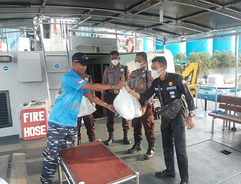 Pangkalan TNI Angkatan Laut Dumai melalui KAL Tedung I-1-37 melaksanakan pembagian bingkisan kepada masyarakat nelayan di seputaran Perairan Dumai dan Satpam di Dermaga Navigasi Dumai, Jum’at (29/04/2022).