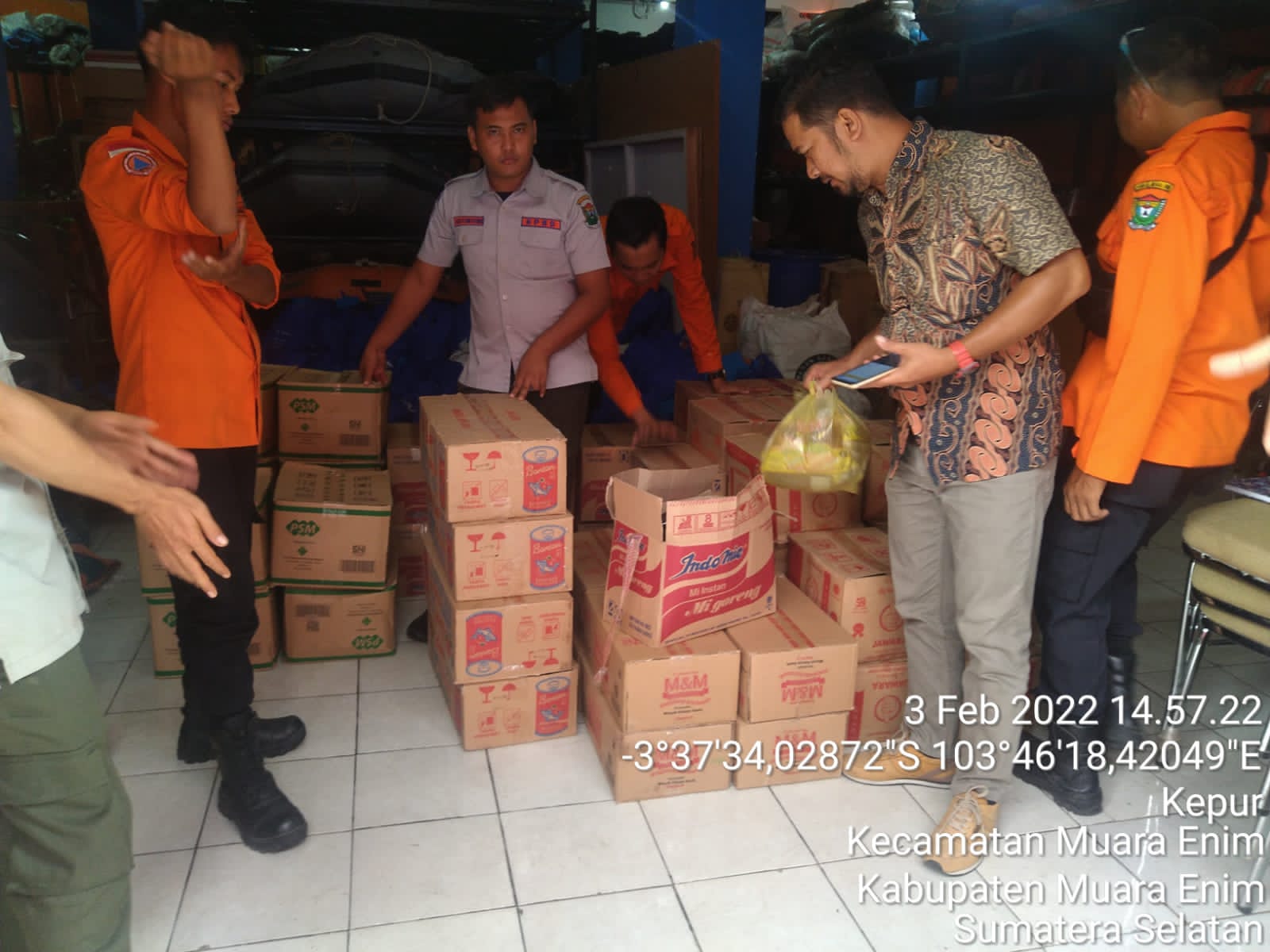 Adapun bantuan paket sembako yang di serahkan ke pada BPBD kabupaten Muara Enim, untuk di salurkan kepada korban terdampak banjir terdiri dari, “Mie Instan 500 Bungkus, Sarden 400 kaleng, Gula Pasir 200 kilogram, Minyak Sayur 100 kilogram, Gandum 100 kilogram, Kecap Manis 200 Botol, Saos Sambal 200 Botol.dan 100 kantong paket sembako lainnya”, papar Kasi Tanggap Darurat BPBD Provinsi.
