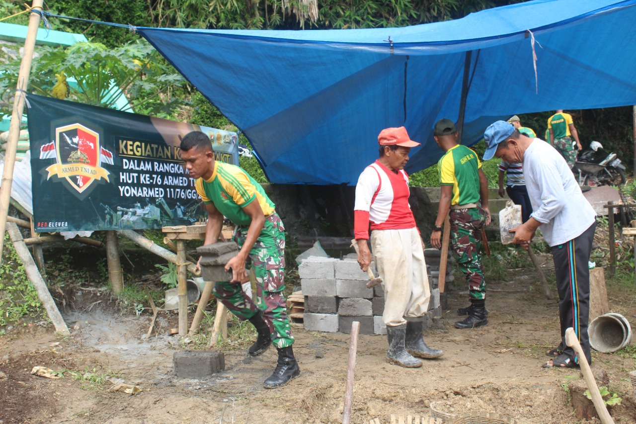 Di tempat yang berbeda, Danyonarmed 11 Kostrad Letkol Arm Adin Suroyo, S.Sos mengatakan, kegiatan karya bakti ini kami laksanakan di setiap minggunya untuk ikut membantu masyarakat dalam mengatasi kesulitan dan mempelopori dan menjadi tauladan dalam kesehariannya.