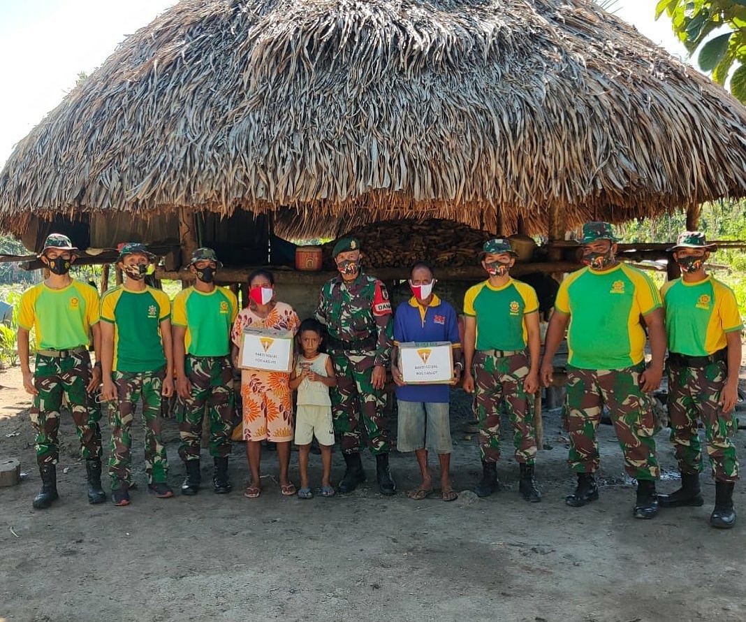 Pos Haslot dipimpin langsung oleh Danpos Serka Lutfi membagikan sembako dengan cara mengunjungi rumah-rumah warga. Sengaja cara tersebut dilakukan guna menjalin tali silaturahmi antara personel Satgas Yonarmed 6/3 Kostrad dengan masyarakat.