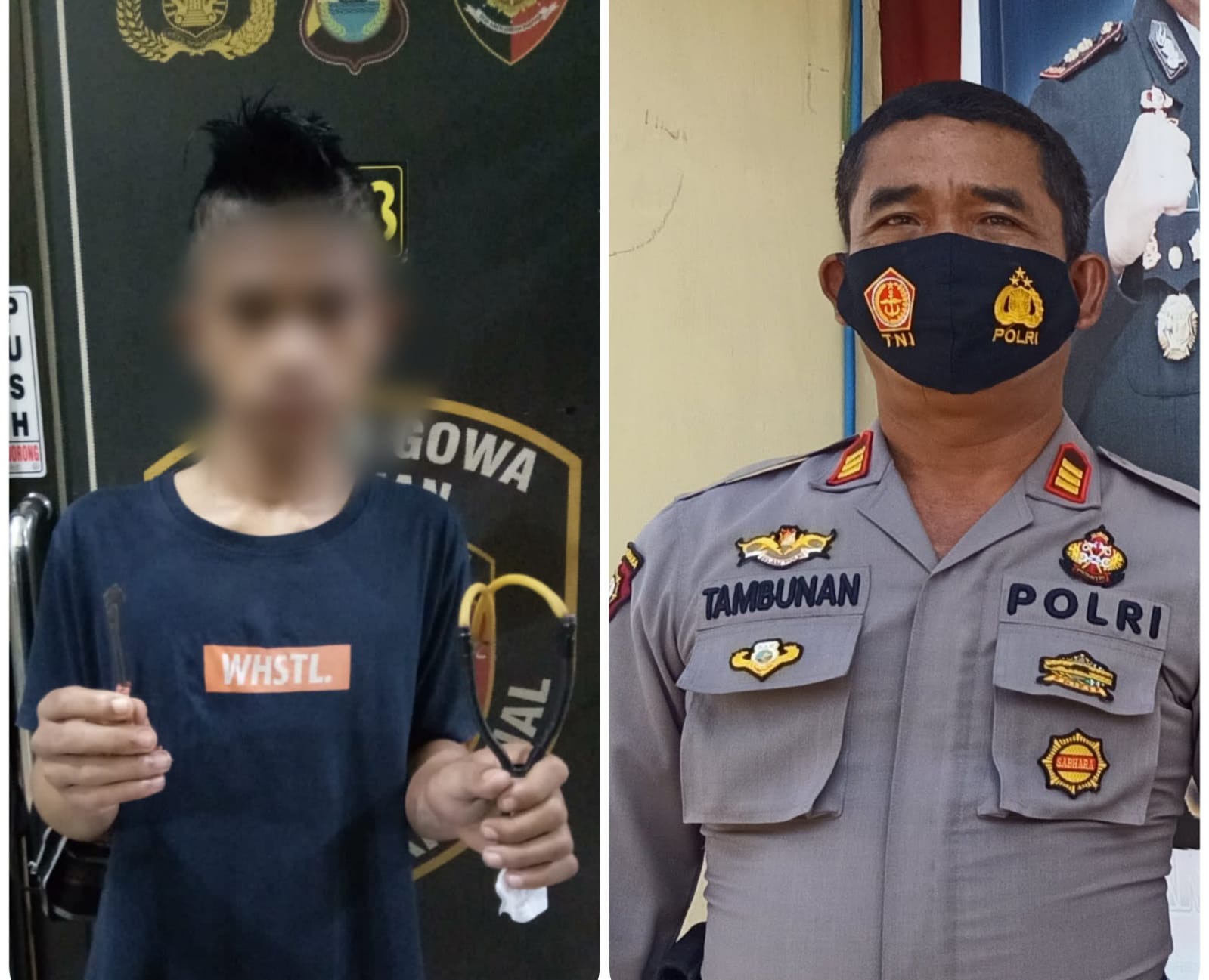 Terduga pelaku ini diamankan pada Minggu sore 6 Feb 2022 di Mangalli Kec Palangga Kab Gowa pukul 16.00 Wita bersama barang bukti berupa busur yang digunakan saat melakukan aksi. Terduga pelaku tersebut merupakan kelompok Geng Motor Swadaya, ujar Kasi Humas Polres Gowa AKP. M. Tambunan