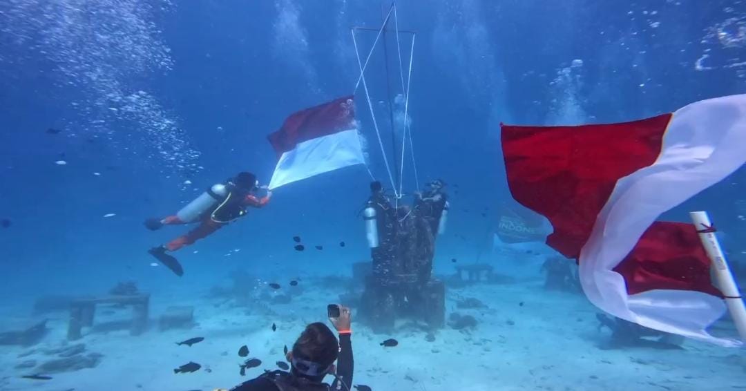Pengibaran Bendera Merah Putih Bawah Laut dilaksanakan secara serentak pada 77 titik diseluruh Indonesia, dengan mengusung tema “Membangun Kejayaan Maritim Untuk Indonesia Pulih Lebih Cepat, Bangkit Lebih Kuat”, yang dipusatkan di Pulau Putri Kepulauan Seribu dipimin oleh Wakil Kepala Staf Angkatan Laut (Wakasal) Laksamana Madya TNI Ahmadi Heri Purwono.