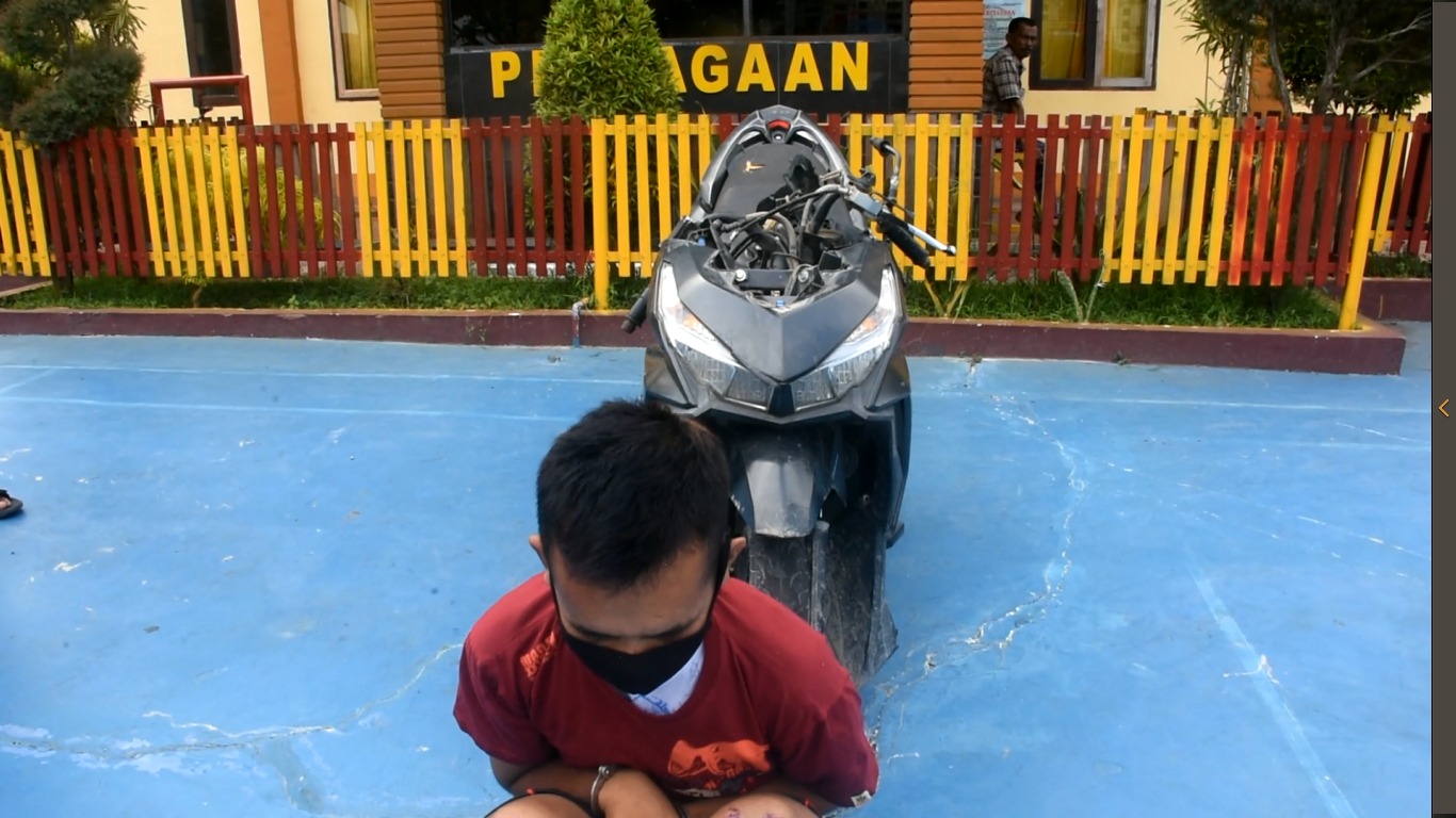 Kepada petugas, pelaku mengakui perbuatannya, melakukan pencurian sepeda motor milik korban dengan cara mengambil kunci sepeda motor yang berada di rak dalam kios tersebut. Saat ditanya keberadaan sepeda motor korban, pelaku menyebutkan bahwa sepeda motor dimaksud berada di kantor Unit Laka Lantas karena pelaku terlibat kecelakaan saat melarikan sepeda motor hasil curiannya.