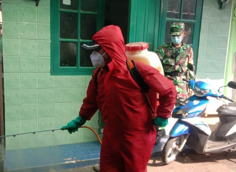 Awak media mendapatkan informasi bahwa kegiatan penyemprotan dilakukan oleh satu tim (10 orang) Damkar yang dipimpin oleh ketua tim, Sunaryo.