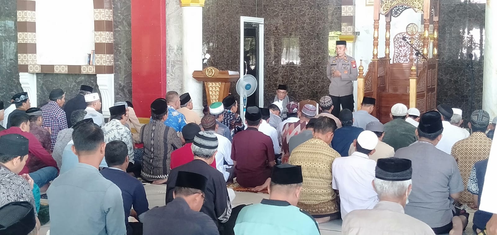 SRIWIJAYATODAY.COM // GOWA-SULSEL, Kapolsek Pallangga Polres Gowa AKP Mannyaurang, S.H. didampingi Kanit Samapta Polsek Pallangga Aiptu Rahman Karim bersama anggota polsek melaksanakan sholat jumat bersama warga di masjid Nurul Izzah, Desa Je’netallasa, Kec. Pallangga Kabupaten Gowa Jumat (11/8/2023)