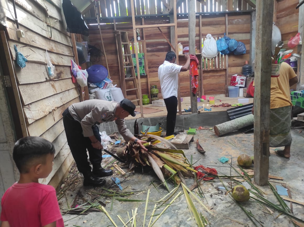 Memperoleh informasi ada rumah warga yang tertimpa pohon Kanit Binmas Polsek Peureulak Barat Aiptu Agus Ramadhani pagi harinya mendatangi rumah Ilyas Abdullah untuk ikut membantu membersihkan puing-puing bekas reruntuhan.