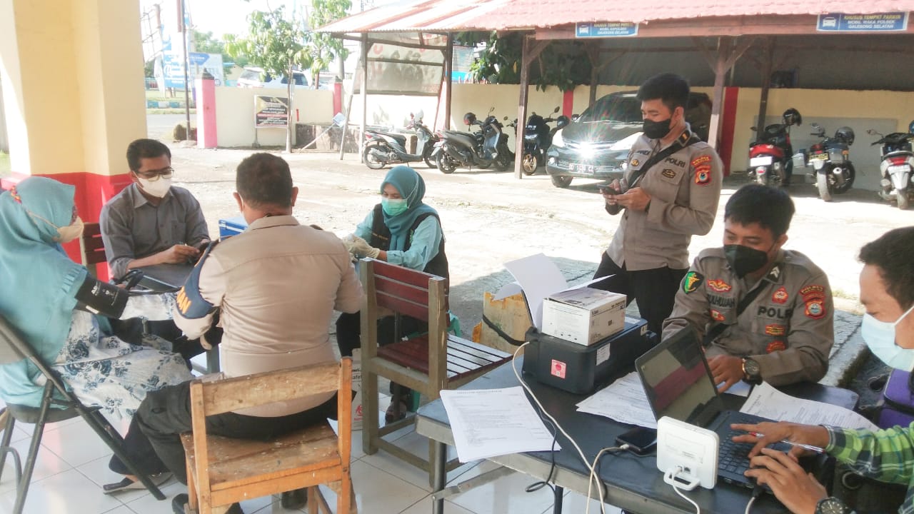 Kali ini Tim Vaksinator Sikes Polres Takalar yang dipimpin langsung oleh Kasikes Polres Takalar IPDA Achmad Afandi S.Kep menggelar Vaksinasi di Kantor Mapolsek Galesong Selatan (Galsel), Kecamatan Galsel, Kabupaten Takalar. Rabu, 25 Mei 2022.