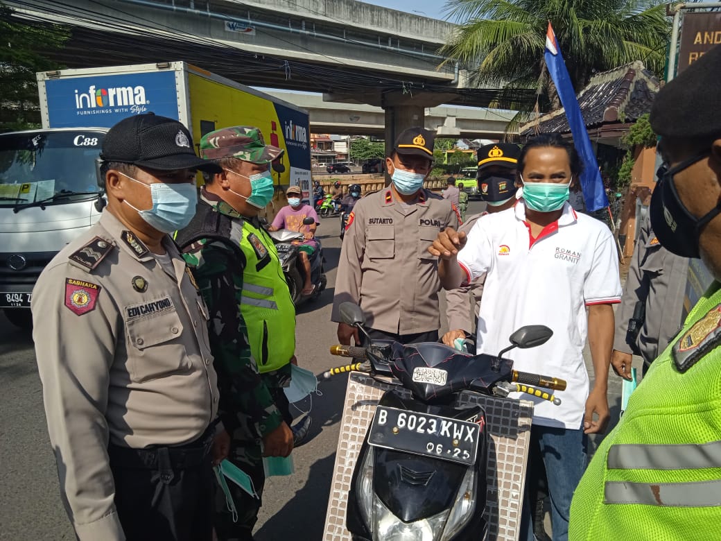 Sriwijayatoday.com Kodam Jaya, Kota Bekasi – Kegiatan PPKM Skala Mikro untuk Pencegahan Covid-19 terus di tingkatkan, Kali ini Babinsa Koramil 01/Kranji Kodim 0507/Bekasi Pelda Jatmiko dan Pelda Sihombing bersama Bhabinkamtibmas melaksanakan edukasi, Imbauan Pencegahan Covid-19 dan membagikan masker, di jalan Kalimalang, Lampu merah pertigaan Depan Kel.Jaka Sampurna, Kota Bekasi, Selasa (08/06/2021)