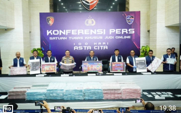 Jakarta – Satgas Penanggulangan Judi Online Polri menyita uang Rp78,1 miliar dari sindikat judi online (judol) internasional. Hal ini sebagai bukti komitmen Polri dalam mendukung program Asta Cita Presiden Prabowo Subianto.