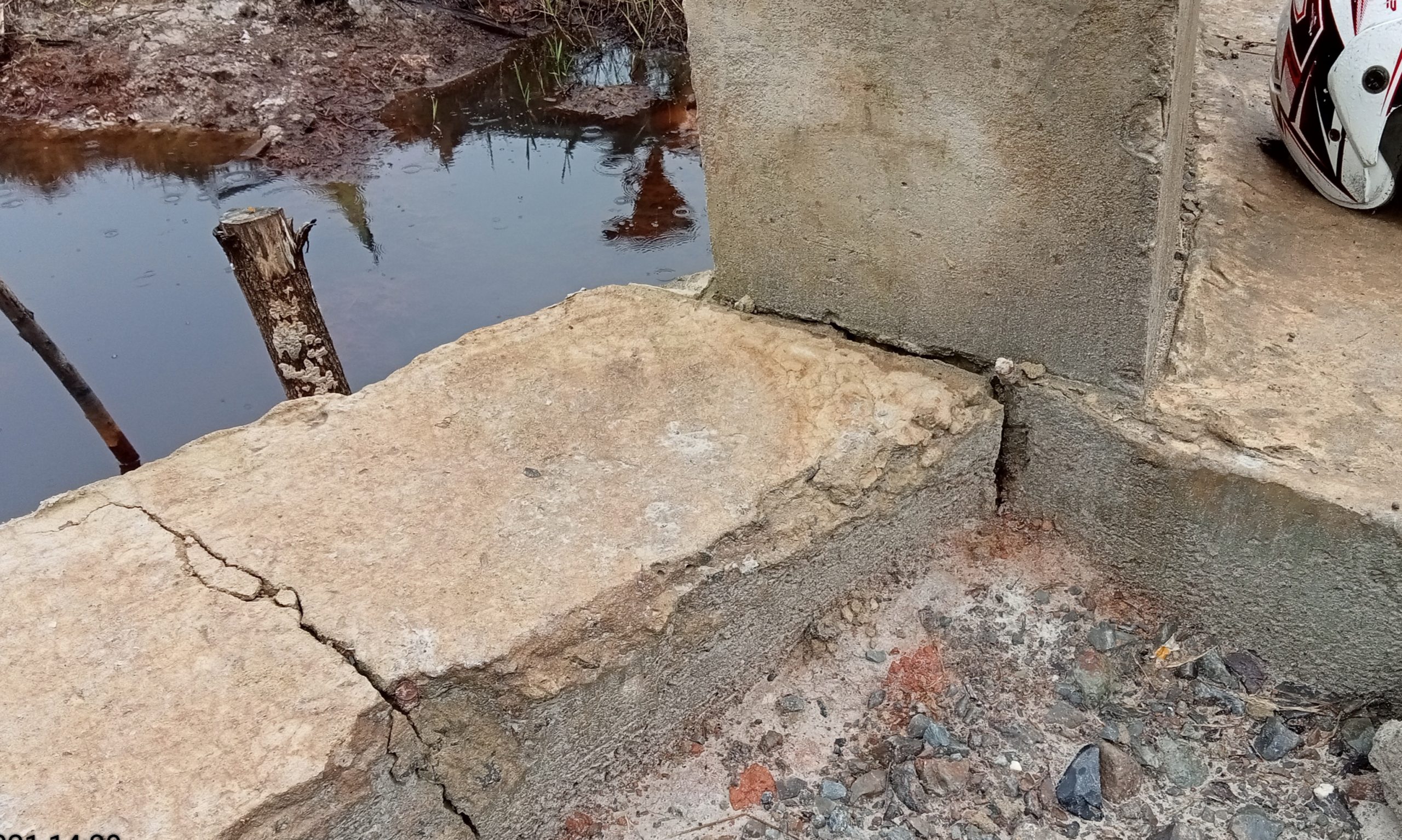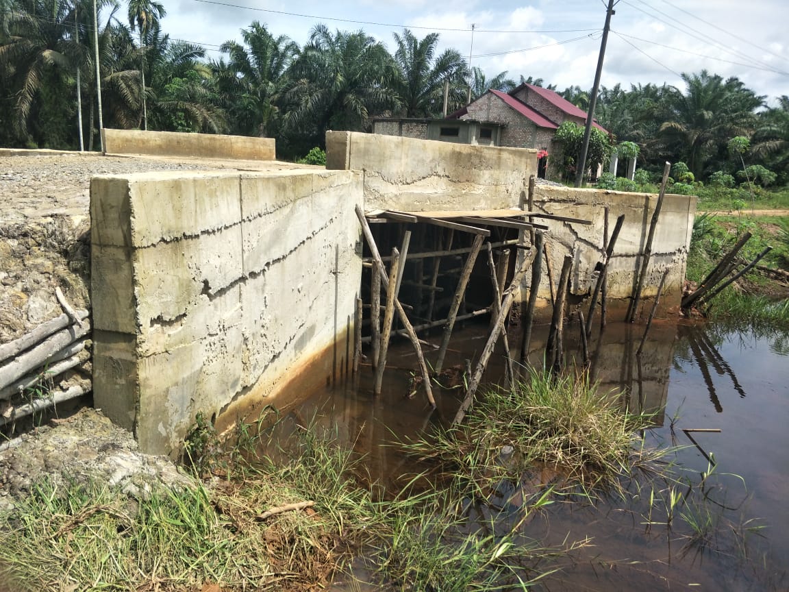 Sriwijayatoday.com | Tanjabtim – Proyek pembangunan box culvert di RT 11 Desa Suka Maju yang mengalami keretakan di beberapa bagian sayapnya terus menjadi sorotan awak media. Pasalnya, bangunan box culvert tersebut yang dikerjakan pihak rekanan dalam hal ini CV. Zahara Sabak Timur belum juga ada tanda-tanda akan di perbaiki.