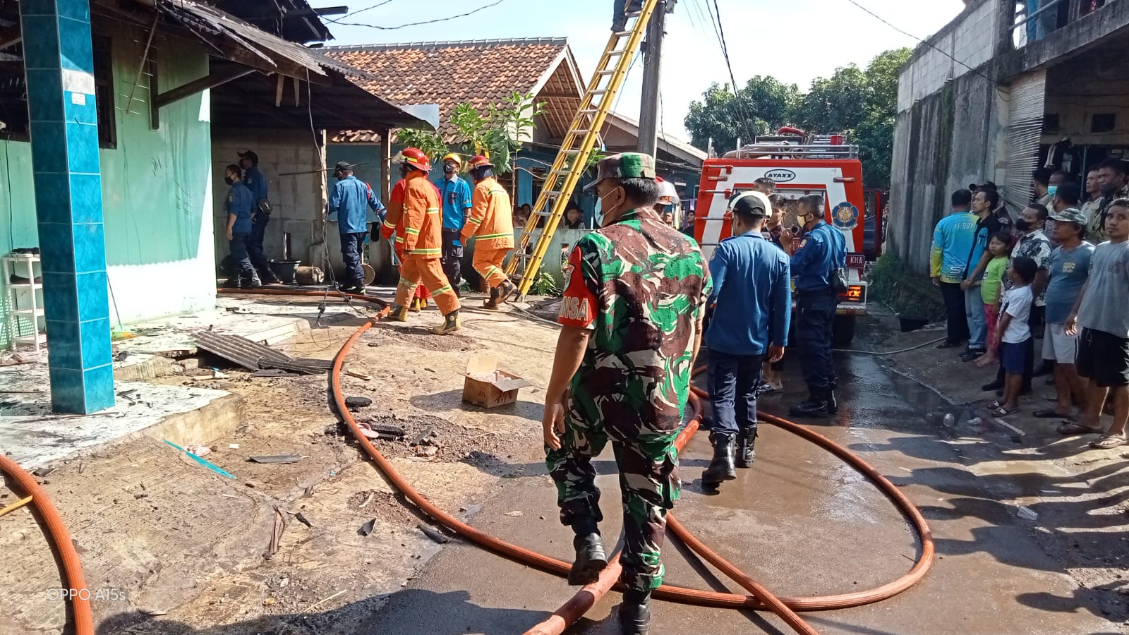 Tak berselang lama sebanyak 3 unit pemadam kebakaran tiba di lokasi dan setelah 10 menit proses pemadaman, api dapat di padamkan, namun menimbulkan kerugian berupa terbakarnya perabot rumah tangga, 2 unit laptop, uang tunai sebesar 5.000.000 rupiah, Kulkas, TV dan seluruh isi dalam rumah.