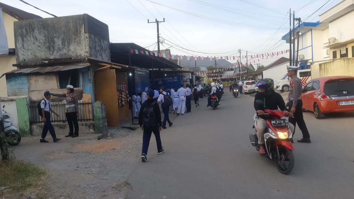 SRIWIJAYATODAY.COM//GOWA-SULSEL Kasat Lantas Polres Gowa AKP Ida Ayu Made Ari Suastini, S.H didampingi Kanit Kamsel Satlantas Polres Gowa Iptu Muh. Syafri dan Kanit Gakkum Ipda Heri Tegur secara humanis kepada para pengendara yang mengantar anak sekolah yang tidak menggunakan helm Anak Sekolah di Jalan Habibu Dg Kulle, Kecamtan Somba Opu Kabupaten Gowa, Selasa ( 15/08/2023) Pagi.