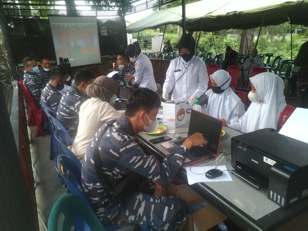 Lanal Sabang menggerakan vaksinator 12 orang personel TNI AL dari Rumkital J.Lilipory Sabang, selama pelaksanaan tetap menerapkan protokol kesehatan.