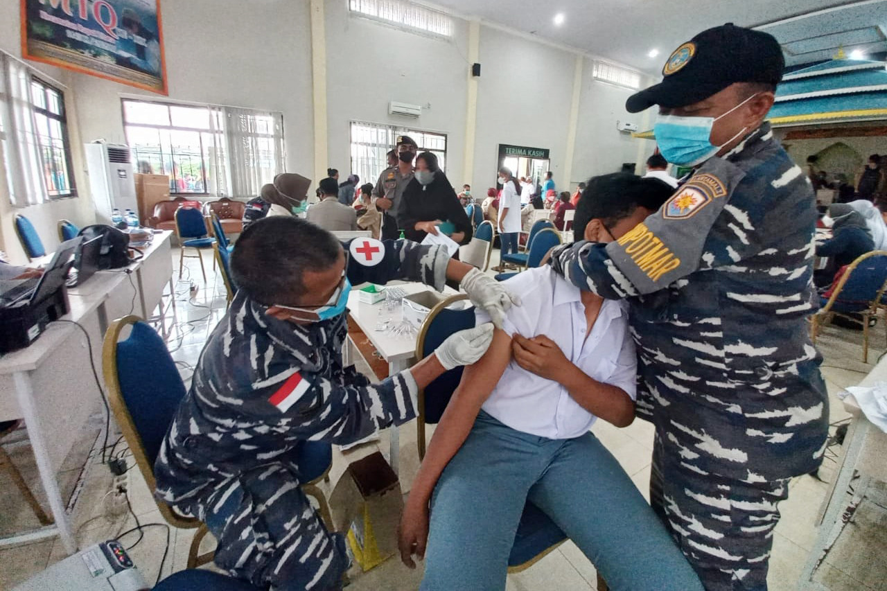 Sriwijayatoday.com Rupat, Lanal Dumai- Dalam rangka mempercepat terbentuknya herd immunity yang bertujuan untuk memberikan perlindungan dan kekebalan kelompok terhadap penularan Covid 19 bagi masyarakat, TNI AL Pangkalan TNI Angkatan Laut kebut pemberian Vaksinasi kepada masyarakat maritim di daerah pesisir pulau Rupat Kabupaten Bengkalis. Kegiatan dilaksanakan di Gedung Perkasa Kecamatan Rupat Utara Kabupaten Bengkalis. Jumat, (05/11/2021).