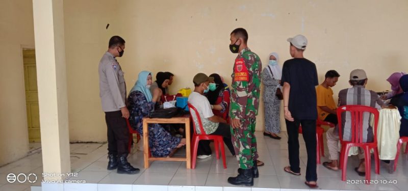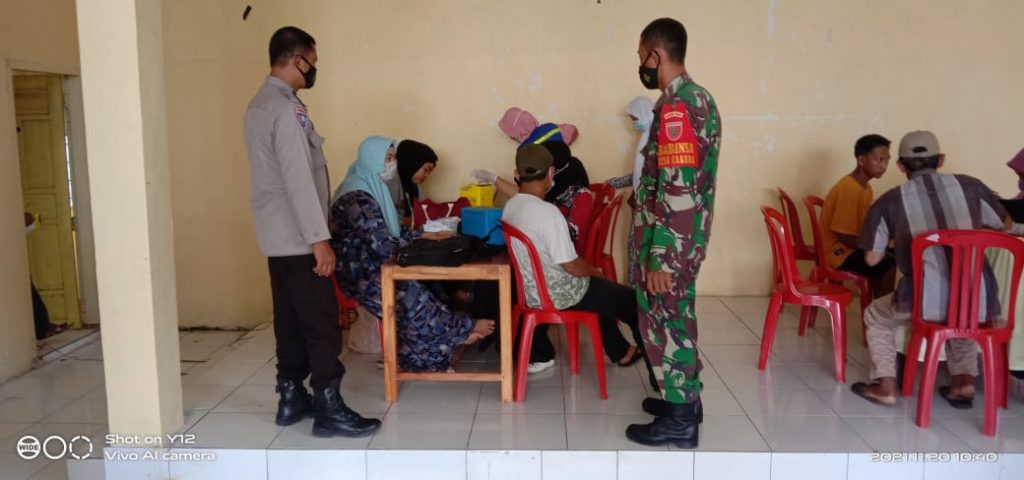 SRIWIJAYATODAY.COM//Takalar – Polisi bersama TNI di Takalar secara intensif bersinergi melakukan pemantauan proses Vaksinasi Covid-19 yang digelar disejumlah wilayah Kabupaten Takalar, Senin (22/11/2021). Pemantauan vaksinasi dilakukan untuk mensukseskan program pemerintah dalam rangka percepatan penanganan Covid-19.